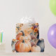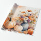 A beautiful autumn scene featuring vibrant pumpkins, surrounded by a collection of whimsical flower arrangements in vases. The background is softly blurred with pastel hues, creating a serene and inviting atmosphere, perfect for celebrating fall. Designed by artist Danguole Serstinskaja