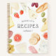 Cute recipe notebook design features three lines of custom text in modern lettering, surrounded by illustrations of cheeses, meats, bread and fruit. Personalise the spine with additional custom text.