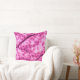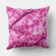 Throw pillow in a pattern of deep fuchsia pink, watercolor, cherry blossoms with branches on a pastel pink background