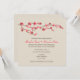 A wedding invitation featuring a watercolor inspired illustration of a branch of cherry blossoms at top. Background is a deep shade of off white. Personalise the text with details of your occasion. Wording is from bride and groom together with their parents. Look for matching items at Jill's Paperie.