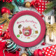 Discover the magic of Christmas! Our delightful watercolor illustration features a cute hot chocolate in a teddy bear mug with marshmallows and a gingerbread, surrounded by festive Christmas cookies as a paper plate for your Christmas party.