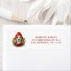 Sweet watercolor style illustration of a sweet beagle dog wearing a red scarf and hat on a background of christmas greenery.