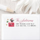 A cute Christmas design with a hand-drawn bird wearing a Christmas hat sat on top of a red gift. There are hand-drawn stars and dots around the bird. On the right, your family name is written in modern script lettering, with your home address printed below. View the collection linked on this page for matching items or visit our store for more return address labels.