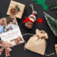A fun festive design featuring watercolor winter favourites - hot chocolate, candy cane, stocking. Merry Christmas in contemporary script font, perfect to celebrate the holiday season. can be edited, part of a collection.