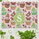 Watercolor Christmas Cupcakes Monogram Tea Towel
