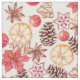 Gorgeous watercolor Christmas elements seamless pattern featuring Christmas cookies, star anise, dry orange slices, red Christmas tree balls, pine cones and Poinsettia flowers.