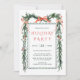 This elegant holiday party invitation features a watercolor Christmas garland (frame) accented with holly berries and charming ribbon bows.