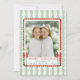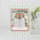 Send holiday cheer with timeless charm in our Watercolor Nutcracker Wishes Christmas photo card. This flat card features a festive border of vertical pale mint green stripes adorned with hand-painted holly leaves and candy canes. Two regal nutcracker soldiers in rich red and green uniforms stand guard at the bottom corners, bringing a touch of classic holiday tradition.