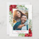 Theme Parties' Christmas greenery holiday card design features hand-painted watercolor greenery and pretty watercolor red poinsettias. Your image is framed simply and the design is accented with watercolor gold speckles and matching holly berries. #Christmas #Holidays #ChristmasCards
