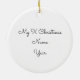 This adorable Christmas ornament features a watercolor illustration of a cute hedgehog with his Christmas gifts on one side, the a place for you to personalise it on the other side.
