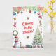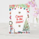 Send festive holiday greeting with this cute greeting card. Holiday images of a Christmas tree, snowman, Christmas presents, stockings, and more in a watercolor effect feature on this card to make the holiday special. The interior repeats the ornamental bough and customize the message as you like. Available with matching products.