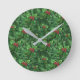 Watercolor Christmas Holly Berries Round Clock