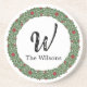 This coaster features a traditional watercolor Holly wreath. Personalise with your monogram and family name.