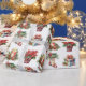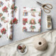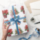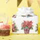 Whimsical vintage style watercolor stockings, candles, Poinsettias and presents done in a cosy old-fashioned style Christmas gift wrap.