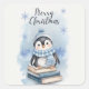 This adorable watercolor Christmas illustration features a cute penguin wearing a cosy blue hat and scarf, sitting atop a stack of books. Surrounded by delicate snowflakes and a soft snowy blue background, it makes a perfect gift for book lovers, winter enthusiasts, or as festive décor. Ideal for stickers, posters, greeting cards, and more holiday-themed products!