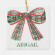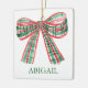Watercolor Christmas Plaid Bow Ceramic Ornament