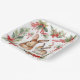Watercolor Christmas Rabbits Red Gold Floral Paper Plate