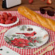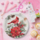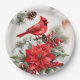 Watercolor Christmas Red Cardinal, Poinsettia Paper Plate