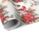 Watercolor Christmas Red Cardinal, Poinsettia Wrapping Paper