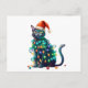 Watercolor Christmas Santa Cat Tree Lights Postcard