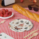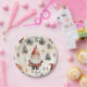 Lovely Christmas paper plates featuring christmas patterns and a cute Santa Claus.