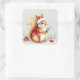 Watercolor Christmas Squirrel with Candy Cane Square Sticker