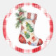 Watercolor Christmas Stocking with Plaid Classic Round Sticker