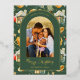 Watercolor Christmas Town Photo Green Foil Holiday Postcard