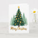 Spread holiday cheer with this festive and heartwarming Christmas card! 🎅🏼🎄 This beautiful watercolor card showcases a lush green pine tree adorned with sparkling gold ornaments and a shimmering star topper, set against a snowy white backdrop with more pine trees in the distance. The elegant gold-script "Merry Christmas" message adds a touch of glamour to this traditional yet modern design. Perfect for sending warm wishes to your loved ones this holiday season. 🎁✨