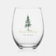 Watercolor Christmas Tree Family Name Holiday Stemless Wine Glass