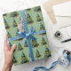 Watercolor Christmas Tree Snowflake Drawing Green Wrapping Paper
