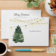 Festive "Merry Christmas" custom holiday envelopes feature a rustic chic winter scene with a green watercolor painted Christmas pine tree and bright string lights. Personalise the charcoal grey wording with your choice of greeting and your family's return address text on the back flap. Makes a beautiful mailing envelope for your Christmas cards.