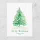 A frosty winter backdrop frames a watercolor Christmas tree, decorated with glistening snowflakes and shimmering gold accents for a simple yet elegant design.
