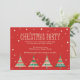A pretty illustration of watercolor Christmas trees on a cheerful red background with snow. The party details are written in modern font. You can move/delete/change most of the design elements/fonts/background according to your choice/preferences.