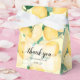 Watercolor lemons and leaves tent style party favour box is closed with a ribbon features your personalised message on the front. MATCHING items in our store