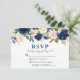 Watercolor Classic Blue Pink Floral Wedding RSVP Card