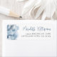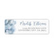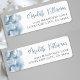 A simple and elegant return address label with a soft, dreamy feel. On the left side, a delicate watercolor cloud detail adds a light and airy touch. On the right, the name and address are displayed in a clean mix of script and serif fonts in blue and gray, creating a polished and easy-to-read layout.