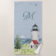 Watercolor Coastal Beach Sand Lighthouse Monogram Towel