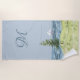 Watercolor Coastal Beach Sand Sailboat Monogram Beach Towel