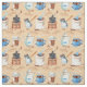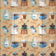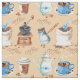 Watercolor coffee pattern with a bag of coffee beans, a coffee grinder, coffee cup, Turkish coffee maker, coffee pot, and a to-go coffee cup.