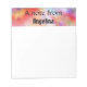 Watercolor coloured splash Notepad with name. The notepad features a vibrant, watercolor-style splash of colour across its cover. The artistic splash design is reminiscent of flowing watercolors blending together. The notepad also includes a designated space to write a name, allowing for personalisation.