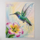 Colourful Hummingbird and Flower Watercolor Poster , Vibrant Nature Art with Custom Text