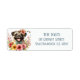 Spring vibes return address labels featuring a cute watercolor Pug in a spring floral landscape. Customisable.