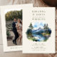 Wedding Invitation with photo of the bride and groom on the back. A watercolor design of a tranquil lake cradled by rolling foothills and towering mountains. The scene captures the quiet majesty of nature, with soft reflections of the landscape mirrored in the glassy surface of the water. Gentle hues of blue and green make this design a timeless choice for those who adore the serenity of the outdoors. Ideal for a dreamy mountain wedding or an intimate lake wedding, this design complements celebrations with a focus on nature’s grandeur. Its understated elegance suits spring mountain weddings, Appalachian mountain weddings, and even destination events like a Montana wedding or Yellowstone wedding. Whether hosting a mountain view wedding or a lakefront wedding reception, this design captures the essence of romance amidst breathtaking country scenery. Browse my Country Lake Wedding collection for co-ordinating invitations, stationery, signs and wedding décor. Message me if you need me to add any additional templates.