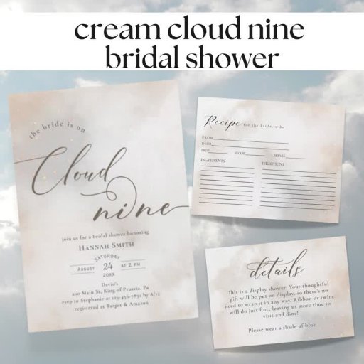 Watercolor Cream Clouds Bridal Shower Recipe Card