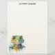 This letterhead combines a crisp white front with a watercolor crocodile and personalized name, and a sage boho geometric striped back. The look is refined yet playful ideal for personal letters, home office stationery, or thoughtful gifts.