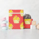 Watercolor Cupcake Painting On Red Wrapping Paper