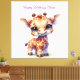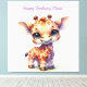 A cute, cartoon-style baby giraffe with large, expressive eyes and a joyful smile. It stands in a playful pose, the overall mood is cheerful and whimsical, perfect for a children's gifts. You can personalise the design by adding your own text or resizing it to fit your space - just click the “edit design” button above. The artwork can be applied to a variety of Zazzle products, including wall art, mugs, cards, tote bags, pillows, and more. This design is provided as a PNG file with a transparent background, allowing for easy placement on various surfaces and background colours.