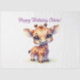 A cute, cartoon-style baby giraffe with large, expressive eyes and a joyful smile. It stands in a playful pose, the overall mood is cheerful and whimsical, perfect for a children's gifts. You can personalise the design by adding your own text or resizing it to fit your space - just click the “edit design” button above. The artwork can be applied to a variety of Zazzle products, including wall art, mugs, cards, tote bags, pillows, and more. This design is provided as a PNG file with a transparent background, allowing for easy placement on various surfaces and background colours.