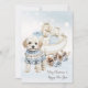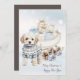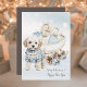 Celebrate the holidays with this whimsical Christmas card featuring a sweet little dog wearing an adorable fair isle sweater in blue brown hues in front of a winter sleigh full of gifts in soft blue and neutral tones, pinecones, and falling snowflakes on a watercolor winter blue sky background. Customisable Merry Christmas and Happy New Year script on front. A solid colour background and a customisable text on reverse where you can add your family name or a heartfelt message to create a truly unique holiday greeting. It's an ideal choice for friends and family who cherish their furry companions and a charming way to send season's greetings that truly resonate with pet owners